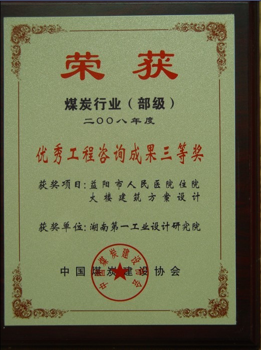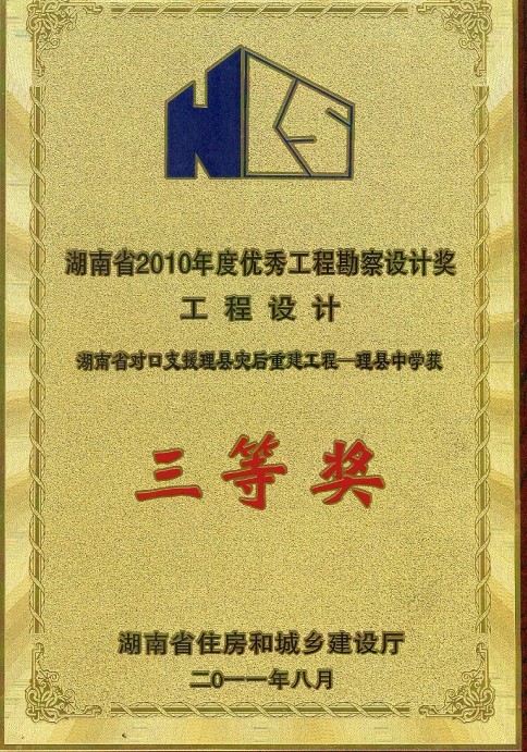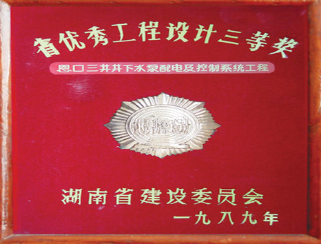 湖南省優(yōu)秀設(shè)計表揚金獎(1984)