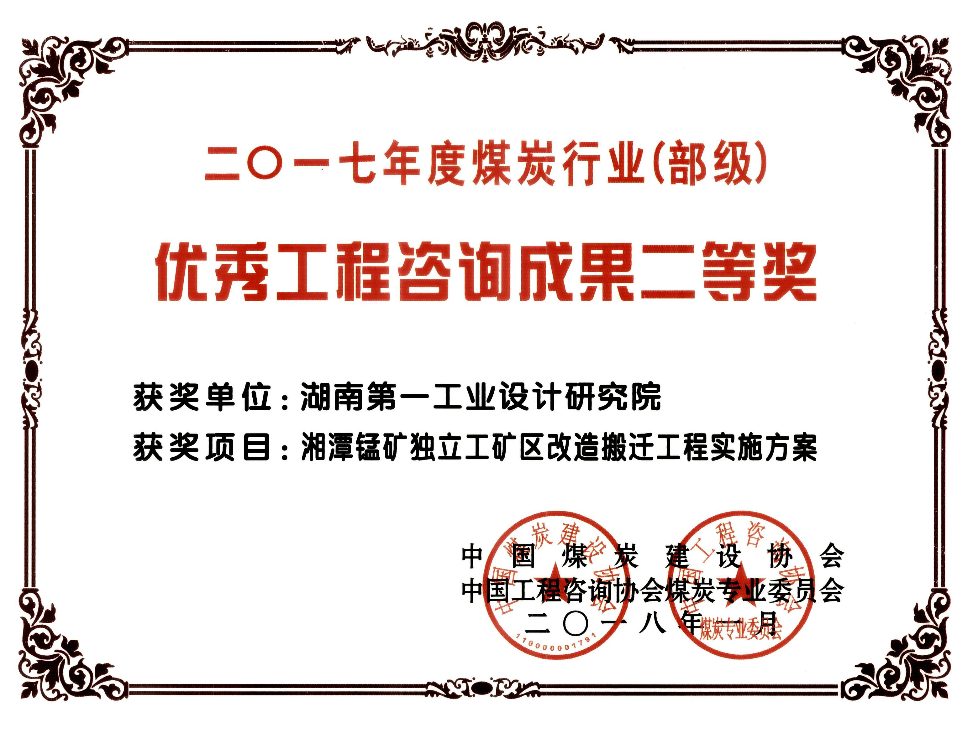 湖南省優(yōu)秀設(shè)計項目二等獎(1984)