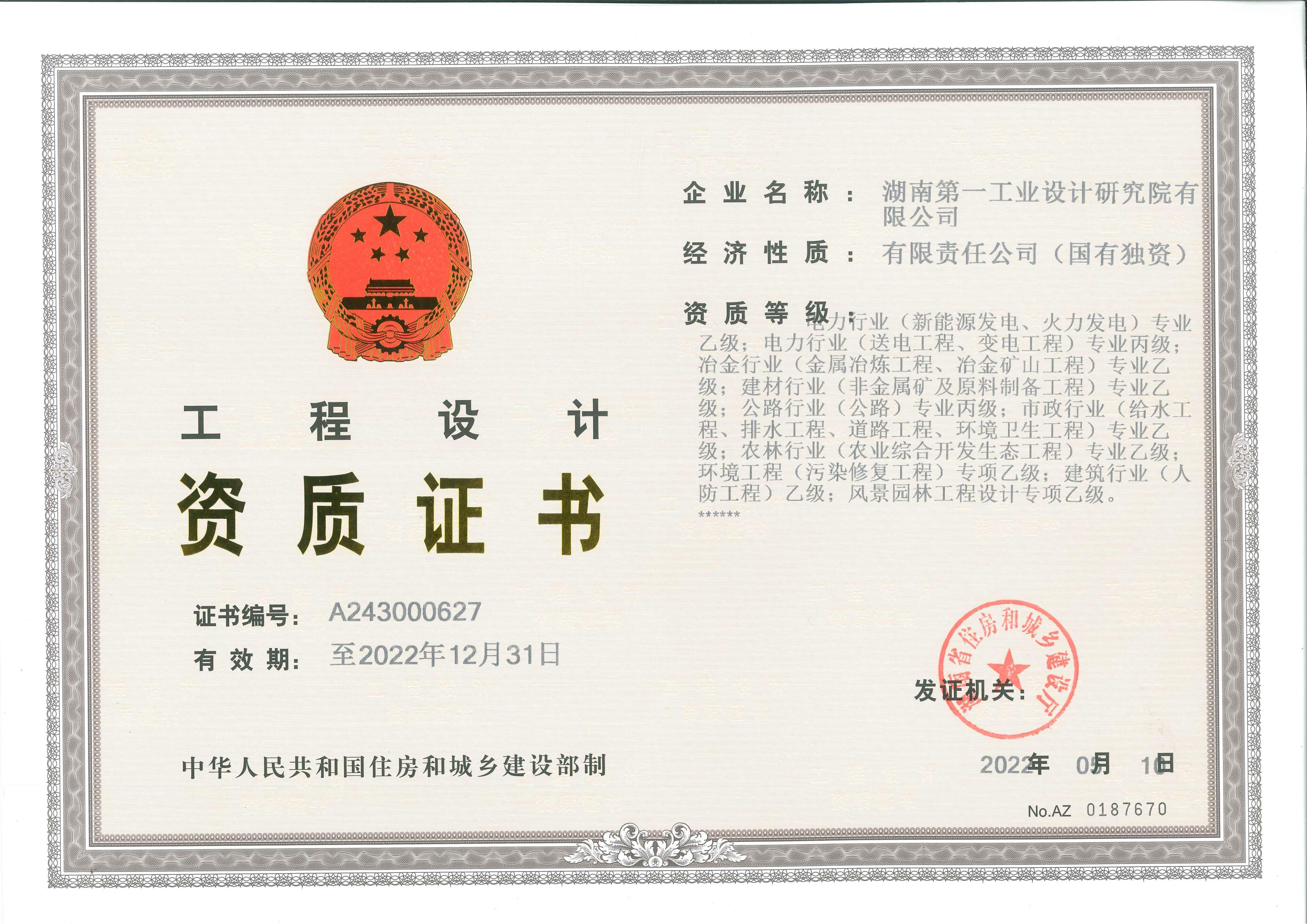 工程設(shè)計資質(zhì)證書